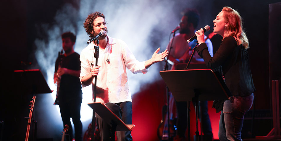 “Lingo Lingo Şişeler”, “O Yar Gelir” ve “Aman Of” gibi pek çok parçaya izleyicilerin de eşlik ettiği iki saatlik konsere Ölmez, Evgar ve Keskin’in hem birbirleriyle hem de seyircilerle şakalaşmaları renk kattı.