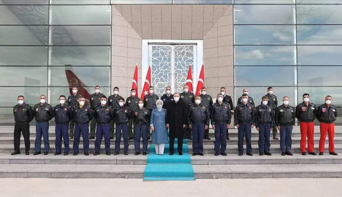 Sohbet ettiği pilotların Dünya Pilotlar Günü'nü kutlayan Başkan Erdoğan, anı fotoğrafı çektirdi.