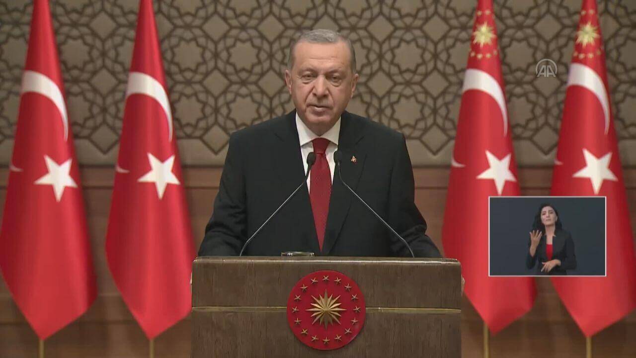 Dün gerçekleşen kabine toplantısına katılan Cumhurbaşkanı Recep Tayyip Erdoğan, üç buçuk saat civarında süren toplantının ardından ulusa sesleniş konuşması yaptı.