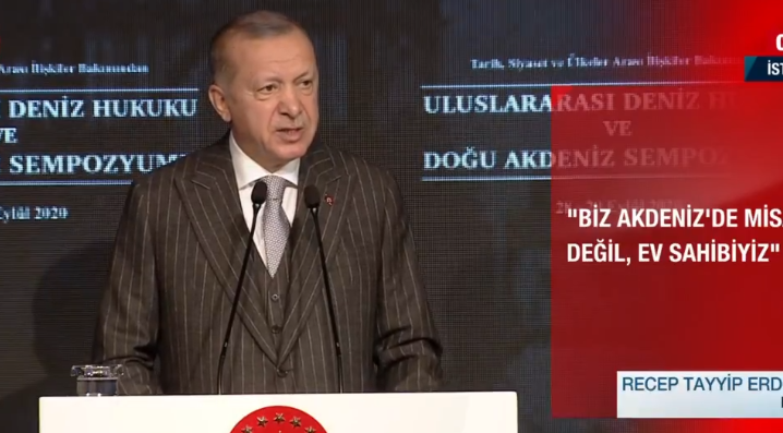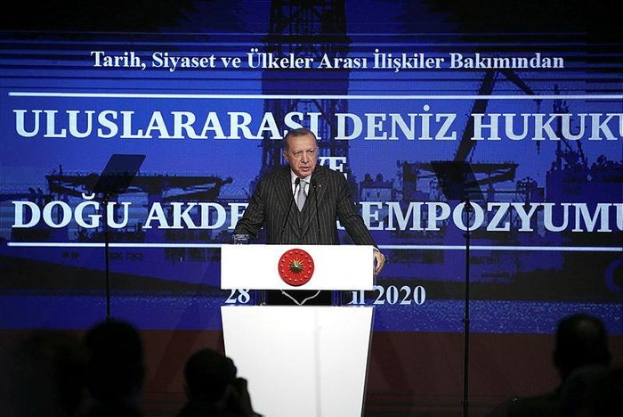 "Doğu Akdeniz'de devam eden gerginliğin müsebbibinin Türkiye değil, Yunanistan ve GKRY olduğunu vurgulayan Cumhurbaşkanı Erdoğan, "Bugün geldiğimiz duruma, Yunan-Rum ikilisinin Türkiye'yi ve Kıbrıs Türklerini yok saymaları, tek yanlı adımlar atmaları, oldubittiler yaratmaları ve AB'nin buna 2003 yılından beri seyirci kalması yol açmıştır. Kıbrıs meselesi çözülmeden AB'ye üye yapılan GKRY, Kıbrıs Türklerini yok sayarak 2003, 2007 ve 2010 yıllarında komşu ülkelerle deniz sınırı anlaşmaları yapmış, 2007 yılında ruhsat sahaları belirlemiş, uluslararası ihaleler açmış ve 2011 yılında ilk sondajını gerçekleştirmiştir.