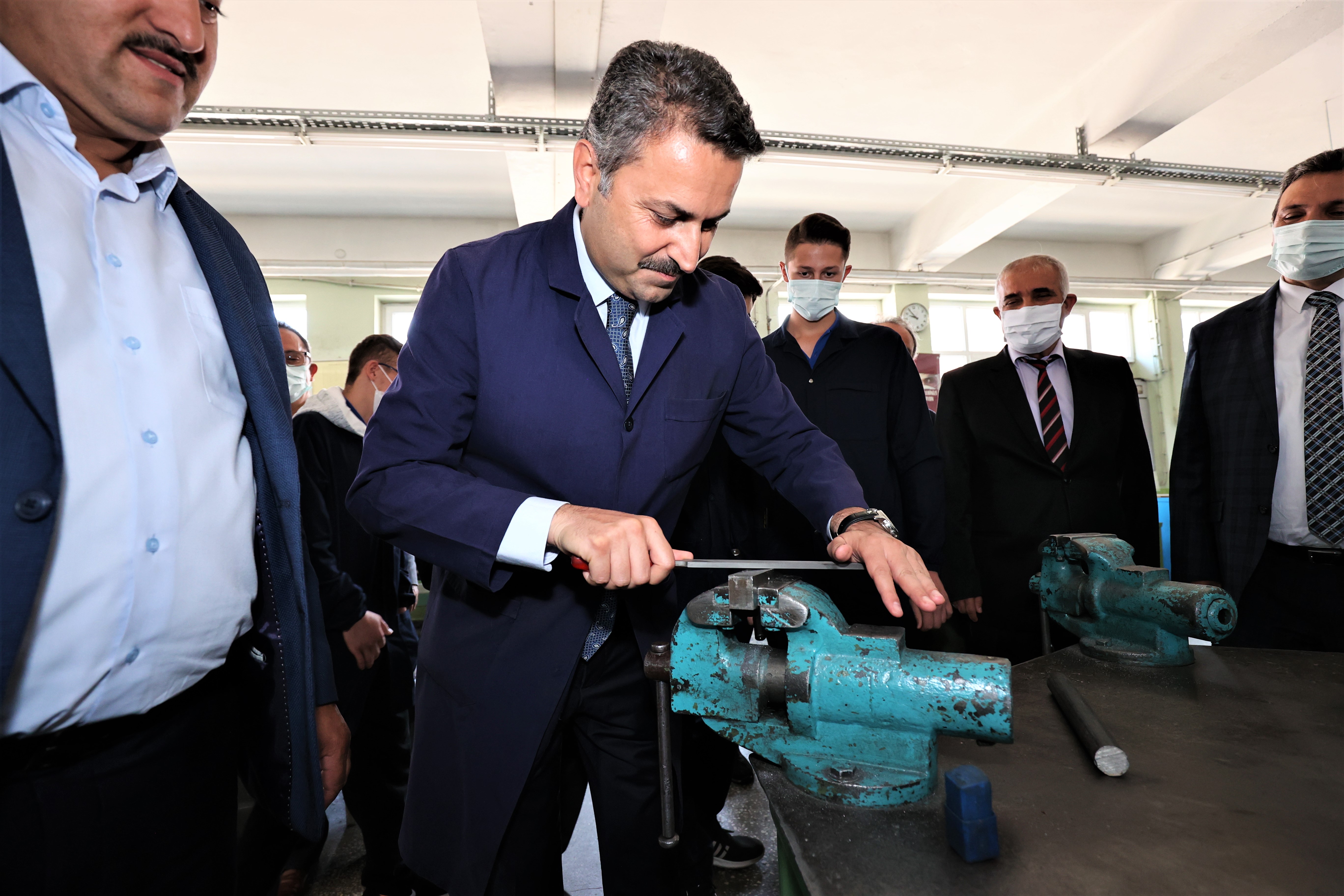 Türkiye’de bir ilki gerçekleştirerek farklı alanlarda robot üretimi gerçekleştiren Tokat Mesleki ve Teknik Anadolu Lisesi öğrencileri ile bir araya gelen Başkan Eroğlu, üretilen cihazlar hakkında, eğitimcilerden bilgi aldı.