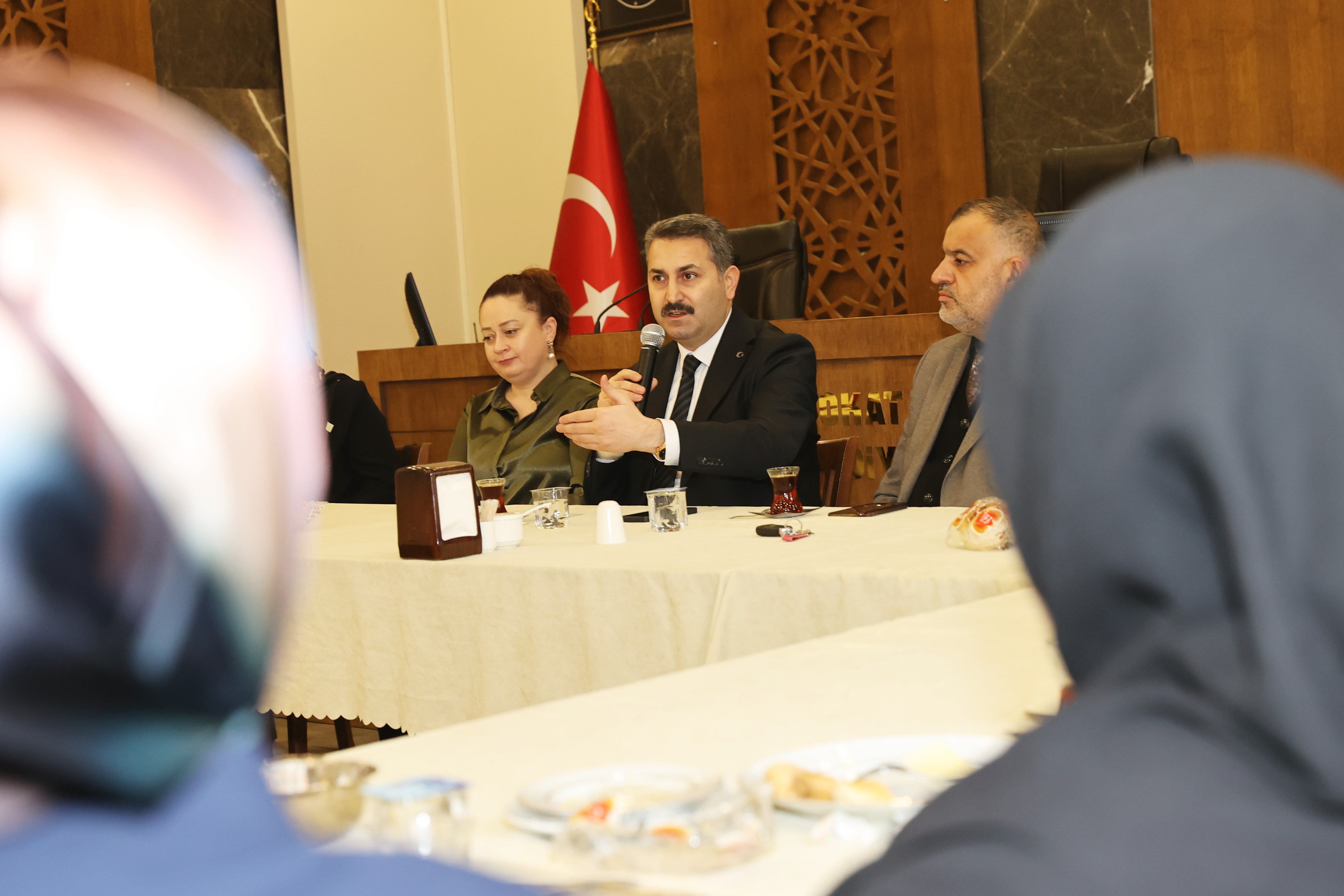 “Hanım kardeşlerimizle bir araya geldiğimiz zaman her zaman ifade ettiğimi bir söz var: ‘Kadın isterse her şeyi başarabilir’. Son yıllarda hanım kardeşlerimiz kurdukları ve çalışmalarını sürdürdükleri kooperatiflerle çok önemli temeller attılar. Bizler bu toplantıda faaliyetleri hakkında daha iyi bilgilenmiş olduk. Bu çalışmaların geliştirilmesi açısından fikir alışverişinde bulunduk. Bizden taleplerini not aldık. Bütün bu bilgiler ışığında hem kadın istihdamına katkı sağlamak hem de üretim ve pazarlamaya destek olmak için yapacağımız çalışmaları not ettik” dedi.