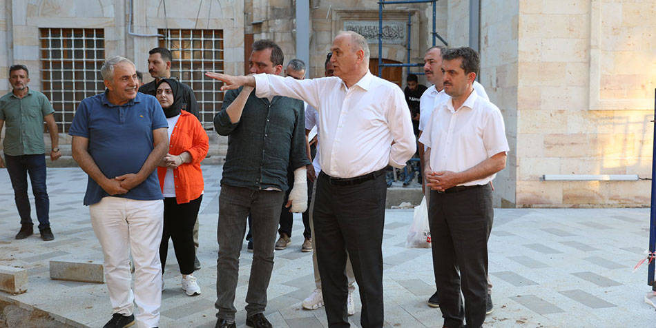 Başkan Özlü, yakından takip ettiği çalışmaları bu kez Düzce İl Müftüsü Osman Yılmaz ile birlikte ziyaret etti. Cami içerisinde detaylı inceleme gerçekleştiren Özlü, Müftü Yılmaz’ın cami giriş çıkışlarına yönelik düzenleme isteğinin halledilmesi için yardımcılarına talimat verdi.