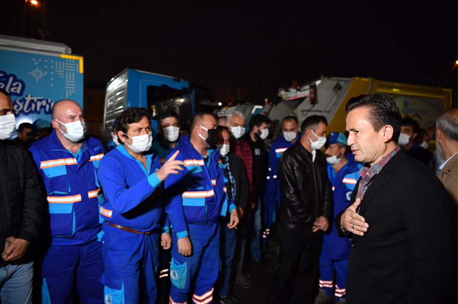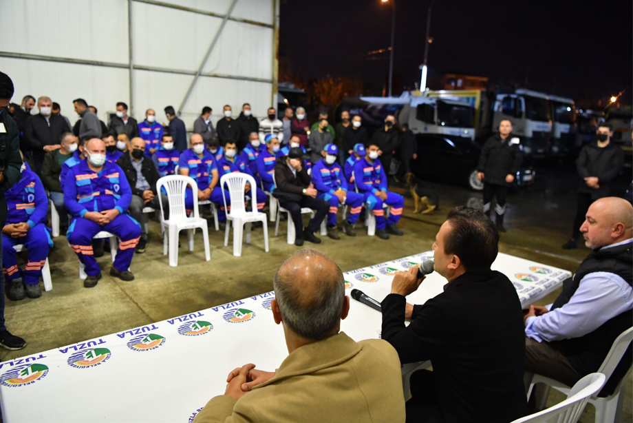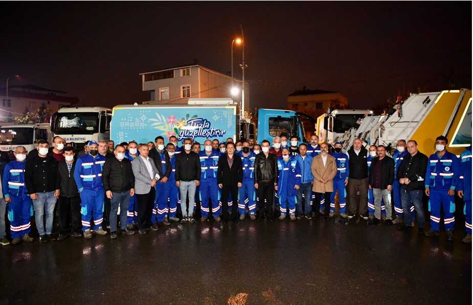 Tuzla Belediye Başkanı Dr. Şadi Yazıcı, sabahın ilk ışıkları ile birlikte daha temiz bir Tuzla için çalışan ve yapmış oldukları çalışmalarla Dünya ve Türkiye gündemine oturan temizlik personellerine sürpriz ziyaret gerçekleştirdi. Özellikle Pandemi döneminde gösterilen özverili çalışma ve gayretlerinden dolayı başta temizlik personeli olmak üzere tüm belediye çalışanlarına teşekkür ederek birde müjde verdi. Başkan Yazıcı, zam döneminde olunmamasına rağmen, tüm Tuzla Belediyesi Şirketi çalışanlarına 500 TL’lik zam yapılacağını açıkladı. Çalışanların yüzünü güldüren bu zam haberinden sonra Başkan Yazıcı, göreve çıkan personeli uğurladı.