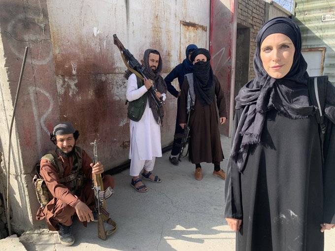 CNN International muhabiri Clarissa Ward ise, başörtüsü takarak Taliban kontrolündeki başkent Kabil'e gitti. Kabil'in nabzını tutan deneyimli muhabir, "Bugün Kabil sokaklarında tarihe tanıklık ettiğimizi hissediyorum" diye tweet atarak başörtülü fotoğrafını paylaştı.