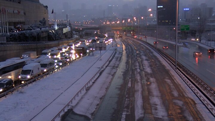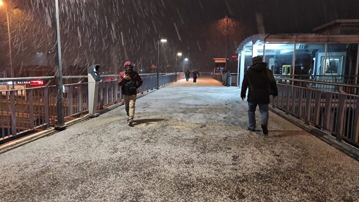 İstanbul'da beklenen kar yağışı etkili olmaya başladı. . Lapa lapa yağan kar yağışı ile birlikte üst geçitler ve yol kenarları beyaza büründü.