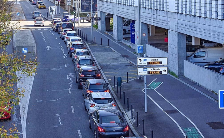 Fransa'da benzin istasyonlarının yaklaşık yüzde 30 kadarında akaryakıt tedarik sıkıntısı yaşanması nedeniyle Goussainville'de birçok mağazanın bulunduğu bir alanda yer alan benzin istasyonunun önünde uzun kuyruklar oluştu.