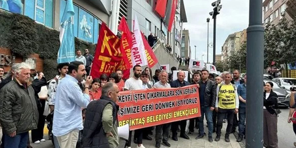 İstanbul'da Beşiktaş Belediyesi'nde maaşlarını ve mesai ücretlerini aylardır düzenli bir biçimde alamayan, bir kısmı hak arama mücadeleleri sebebiyle bir kısmıysa 'ihtiyaç fazlası' gibi gerekçelerle işten çıkarılan işçiler, Cuma günleri Belediye binası önünde eylem yaptılar.