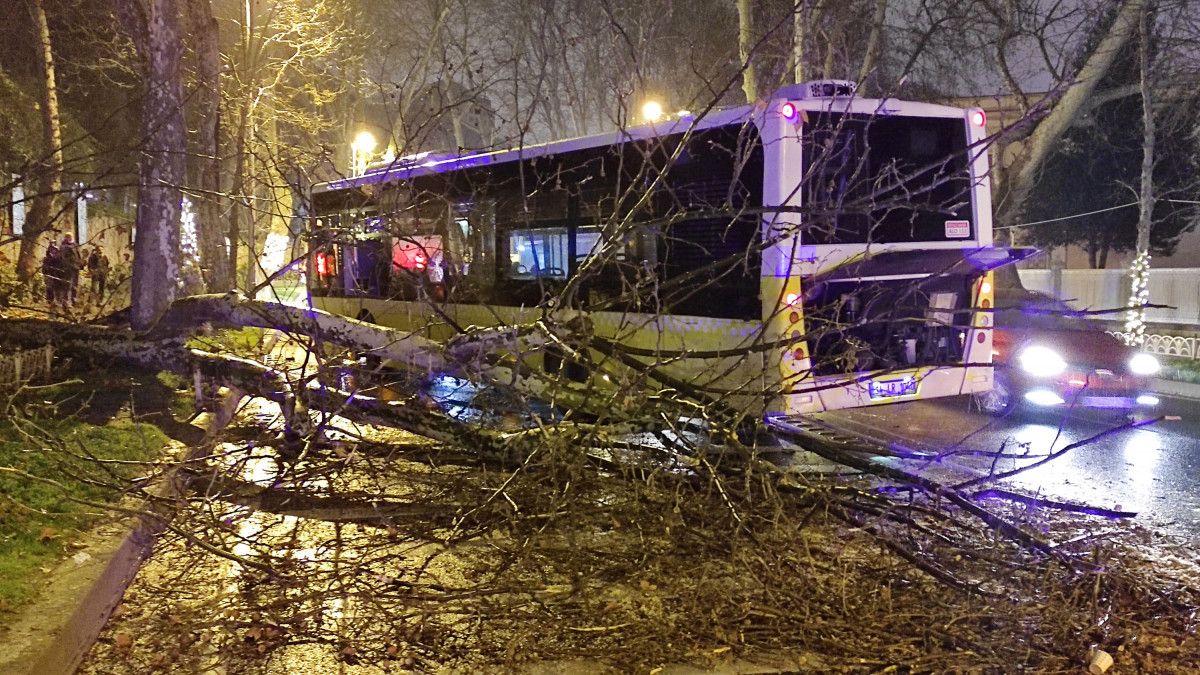 Devrilen ağaç ve kaza yapan otobüs nedeniyle Dolmabahçe Caddesi üzerinde uzun araç kuyrukları oluştu.