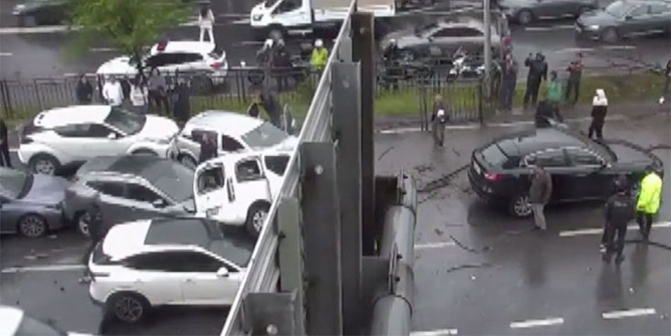Bariyerleri aşarak karşı şeride geçen araç, ortalığı savaş alanına çevirdi. Akan trafikte otomobillere çarpan hafif ticari araç, 2 otomobilin üzerine asılı kaldı. 8 aracın karıştığı zincirleme kazada ilk belirlemelere göre 8 kişi yaralandı.