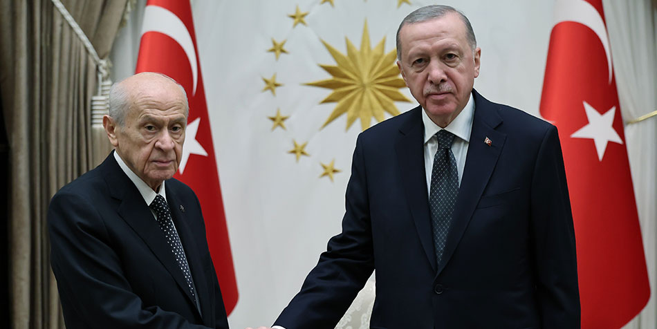 Beştepe'de kritik zirve! Cumhurbaşkanı Erdoğan Devlet Bahçeli ile bir araya geldiCumhurbaşkanı Recep Tayyip Erdoğan ile Milliyetçi Hareket Partisi Genel Başkanı Devlet Bahçeli ile görüştü.14 Kasım 2024, Perşembe - 18:30 Cumhurbaşkanı Recep Tayyip Erdoğan, Milliyetçi Hareket Partisi (MHP) Genel Başkanı Devlet Bahçeli’yi Cumhurbaşkanlığı Külliyesi’nde kabul etti.MHP'den İmralı açıklaması! "Cuma günü karar alınacak"Cumhurbaşkanı Erdoğan ve Bahçeli, bugün saat 18:00'de bir araya geldi.Etiketler: Cumhurbaşkanı Recep Tayyip Erdoğan Devlet Bahçeli