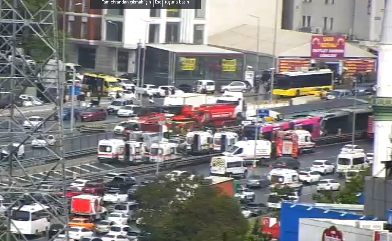 Haramidere Durağı'nda yolcu alan bir metrobüse arkadan gelen başka bir metrobüs henüz belirlenemeyen bir nedenle çarptı.