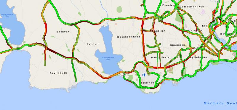 Kazanın ardından Beylikdüzü'nde yaşanan trafik yoğunluğu, İBB'nin haritasına da yansıdı.