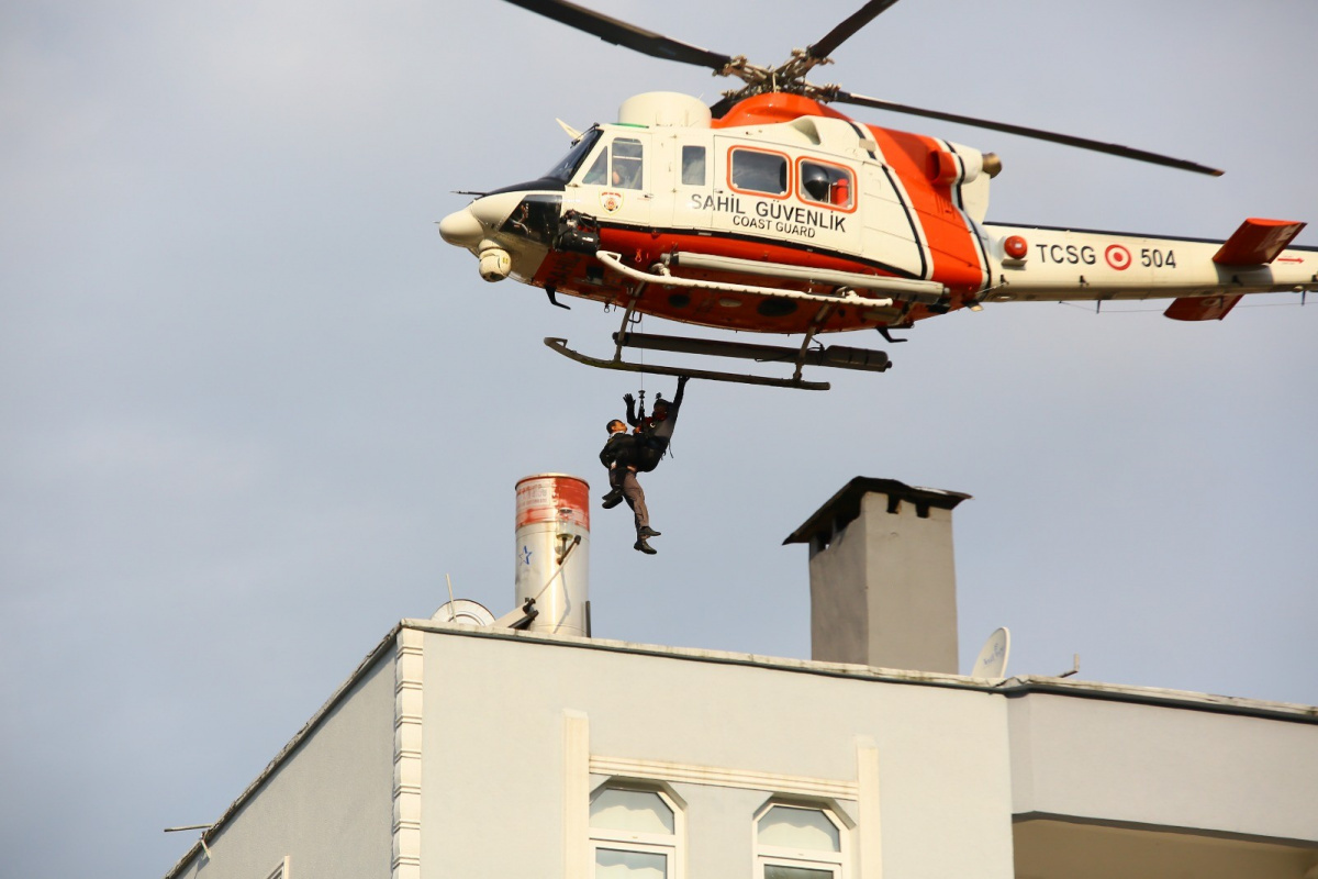 Sel sebebi ile binalarda mahsur kalan vatandaşlar helikopterlerle kurtarıldı. Karadan da ekipler kurtarma çalışması yapıyor.