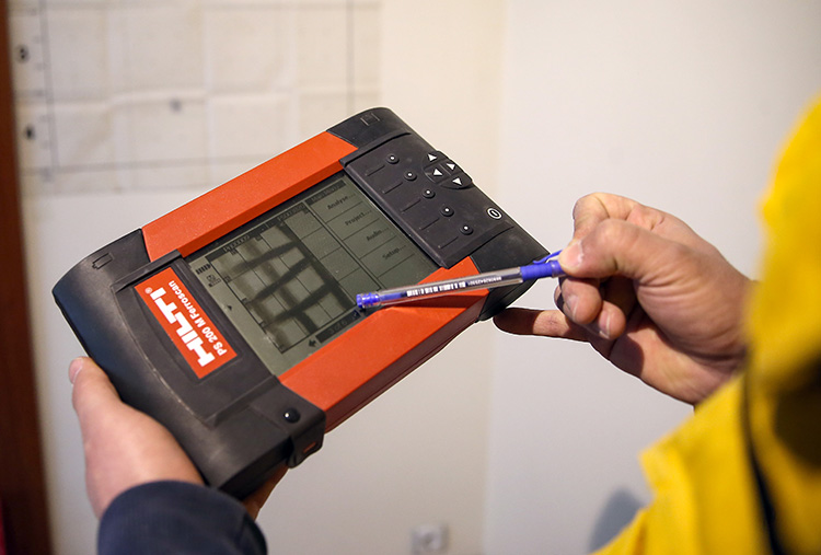 "Bu çalışma gerçekleştirildikten sonra binada karot çalışmaları yapıyoruz. Karot çalışması sırasında betondan numune alma işlemi yapılırken mutlaka daha öncesinde donatı tespitlerinin yapılması gerekir. Düşey ve yatay donatıları tespit edip demir olmayan beton bölgeden karot alınması gerekir.