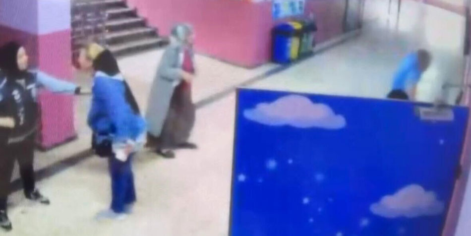 Maltepe'de okul ile birlikte geziye katılan öğrenci, velisini beklemeden eve gitti. Okula gittiğinde çocuğunu bulamayan veli ise güvenlik kamerası kayıtlarını incelemek istedi. Veli, görüntüleri polis eşliğinde izleyebileceğini söyleyen okul yöneticilerine saldırdı. O anlar güvenlik kamerasına yansıdı.