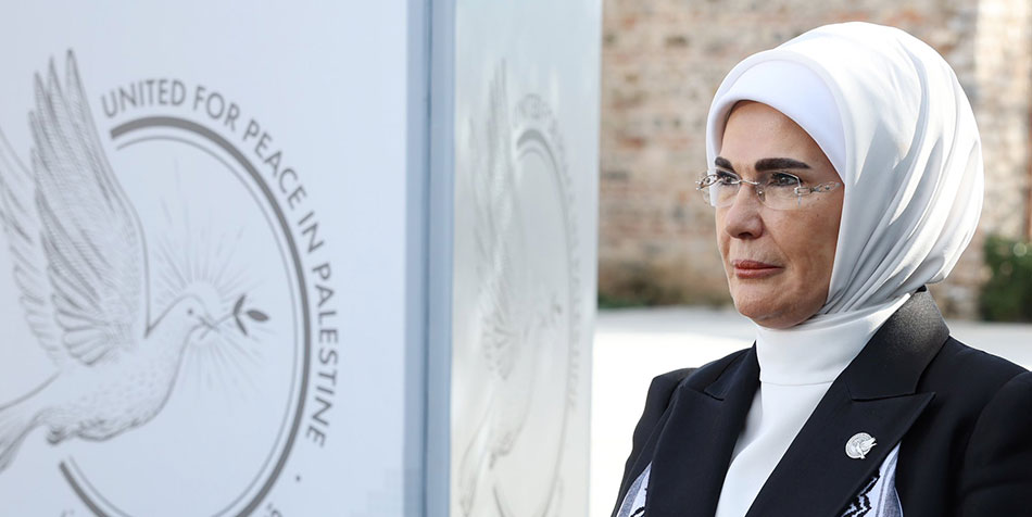 Birleşmiş Milletler ve İslam İşbirliği Teşkilatı gibi uluslararası kuruluşlar bünyesinde, İsrail'in yıktığı okulları, parkları, hastaneleri yeniden inşa etmek üzere şimdiden bir fon kurulması gerektiğini ifade eden Emine Erdoğan, "Lütfen unutmayın, bugün Filistin'i yıkıntılar, kan, gözyaşı ve dumanlar arasında görüyor olabiliriz ama bu karanlık resmin ötesinde, bizim bir Filistin hayalimiz var." diyen Erdoğan, "Gazze'nin sahillerinde dini, etnik kökeni fark etmeksizin Filistinli çocukların el ele, kardeşçe koşturduğu bir hayal. Limon ağaçlarının çiçek açtığı, güneşin zeytin dallarındaki meyvelere vurduğu, babaların korkusuzca evlatlarıyla buluştuğu, annelerin çocuklarını öpüp mezara değil, yatağına koyduğu bir Filistin. Bu Filistin hayali bizim ellerimizde, vereceğimiz sözlerimizde, bugünkü eylemlerimizde. Etrafımızı saran karanlıkta, vicdanlarınızla insanlığa ışık olmaya niyetli sizler, iyi ki varsınız" diye konuştu.