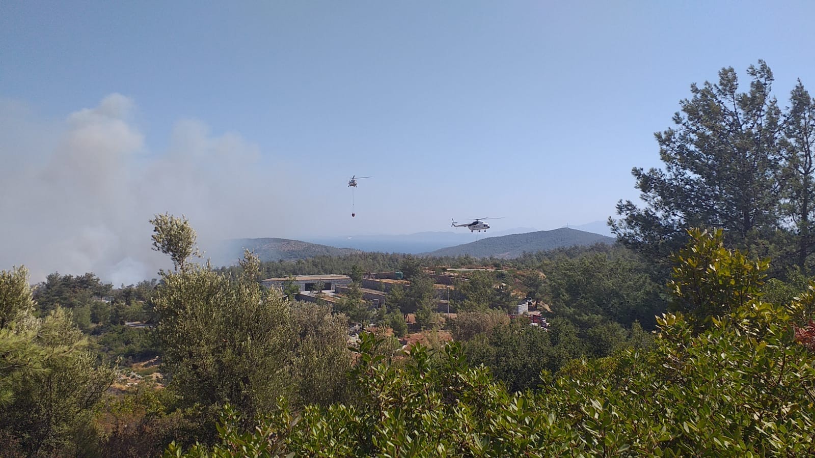 Yangına 5 helikopter ve 1 uçak ile havadan, çok sayıda arazöz ile yangın söndürme işçisi de karadan müdahale ediyor.