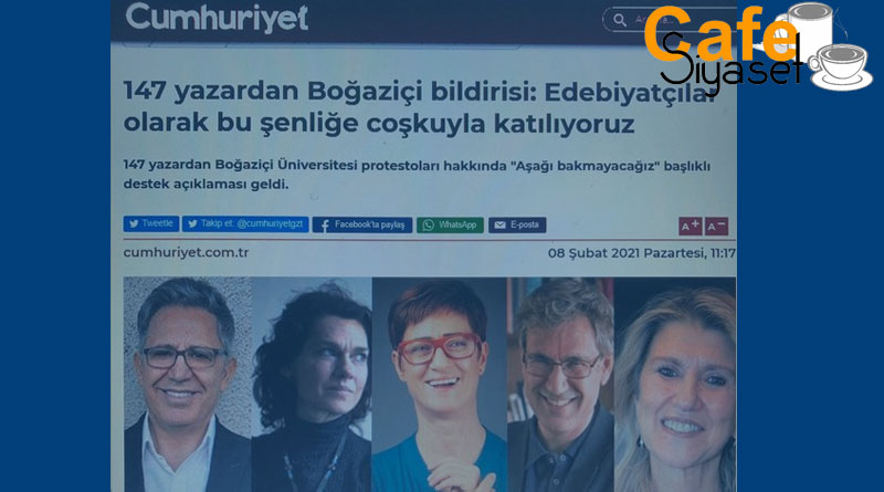 Bugün ise Cumhuriyet Gazetesi'nde bir haber yayınlandı. Bu haberde 147 yazarın "Boğaziçi Bildirisi" adı altında bir bildiri yayınladığı duyuruldu. Fakat bildiride polisin "Aşağı bak" dediği vurgulanarak bir skandala imza atıldı.