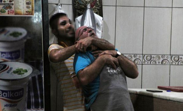 Sürekli sağdan ya da soldan kendisine saldırı olacağını zannederek etrafına bakınan Kamil T.A.'nın oturduğu yerde, elinde tuttuğu ekmek bıçağıyla hareket ederken, rehin tuttuğu Lütfü Salman'ın boğazını kesti. Bu sırada can havliyle silkelenen Salman, Kamil T.A.'nın elinden kurtulmayı başardı. Yakın mesafede bekleyen polis ekipleri tarafından yaka paça etkisiz hale getirilen Kamil T.A., polislere hakaret etti.