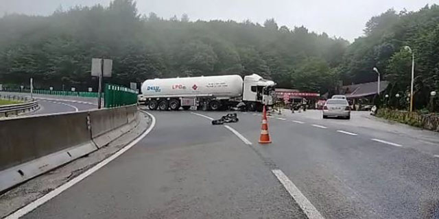 İstanbul yönüne giden Ramazan İlter yönetimindeki 34 JC 0543 plakalı LPG tankeri, yoğun siste kontrolden çıkarak beton bariyerleri yıkıp, karşı şeride geçti.