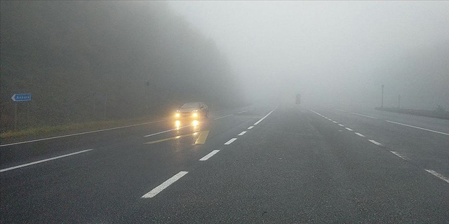 Görüş mesafesinin azaldığı bölgede, sürücüler dikkatle ilerliyor.