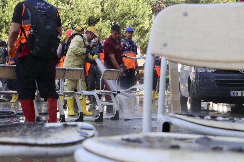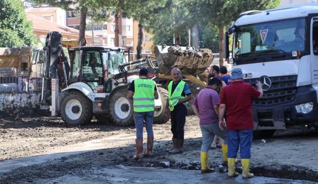 Yüzlerce arama kurtarma ekibi, harabeye dönen ilçede cadde ve sokaklar ile iş yerlerinde temizlik çalışması yapıyor. Çamur ve balçıkla dolan cadde ve sokaklar ile iş yerleri ve binaların bodrum katları temizleniyor.