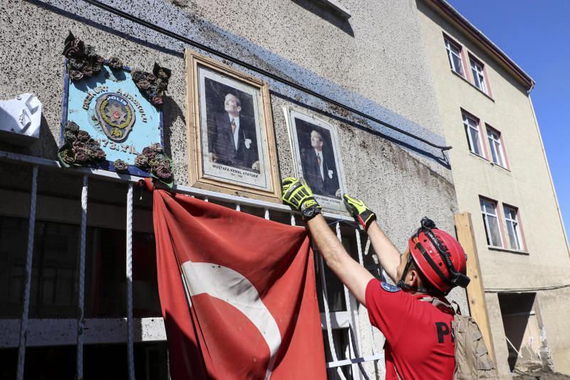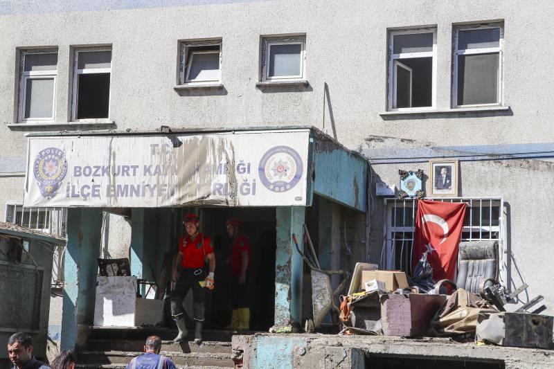 Kastamonu'nun Bozkurt ilçesinde kayıpları arama çalışması sürerken, temizlik çalışması ile de selin izleri silinmeye çalışılıyor. Sel felaketinde hasar gören İlçe Emniyet Müdürlüğü'nde Polis Arama Kurtarma (PAK) ekiplerince yapılan çalışmada binanın giriş katının tamamen çamur ve balçıkla dolduğu görüldü.