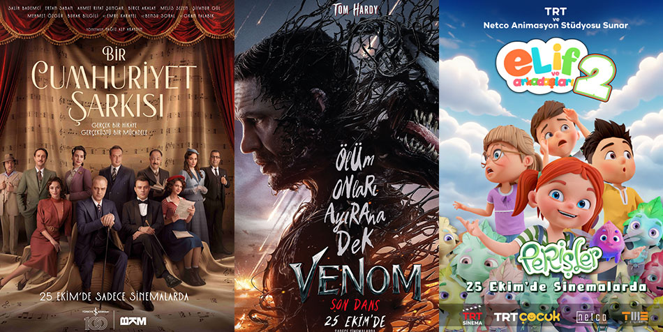 Vizyondaki filmlerin yanı sıra Bir Cumhuriyet Şarkısı, Venom: Son Dans (Venom: The Last Dance), Elif ve Arkadaşları 2: Perişler, Mustafa, Garez ve Köprü filmlerinin içe risinde bulunduğu 25 Ekim Cuma haftasının vizyon programı www.paribucineverse. com üzerinden takip edilebiliyor.