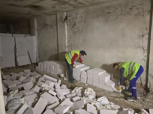 Polis ekiplerinin olay yerine sevk edildiği olayda zeminden yaklaşık 1.5 metre aşağıya kaçak kat inildiği ve alanı tahtalarla güçlendirip beton dökme aşamasına geçildiği görüldü.