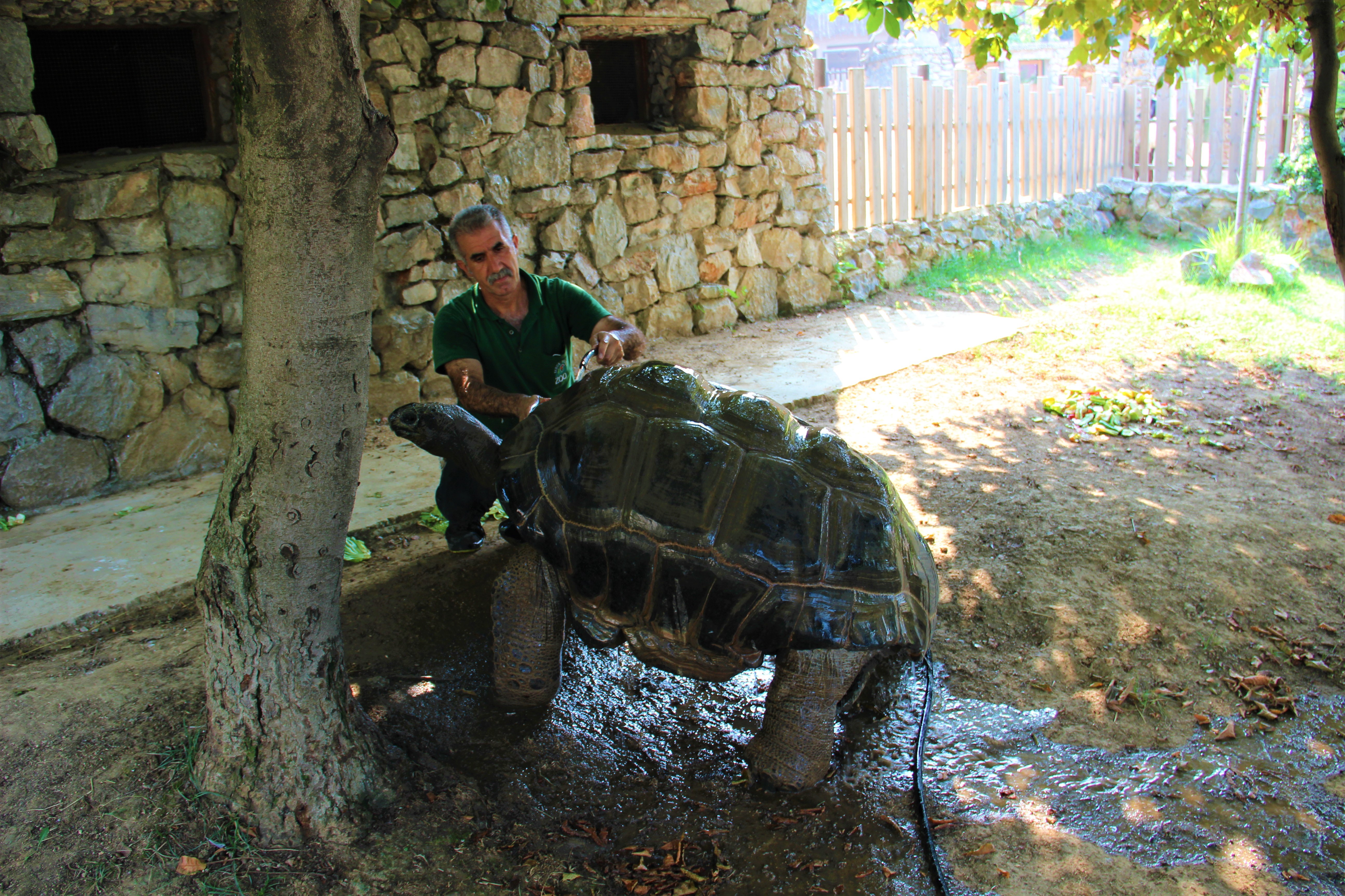 22 yıl önce hayvanat bahçesine getirilen ve şu anda buranın en yaşlı üyesi olan Tuki'nin geldiği günden beri bakımını Faruk Yalçın Hayvanat Bahçesi Sürüngenler Bölümü Başbakıcısı Reşat Aydın yapıyor. Sabah erken saatlerde işinin başına geçen Aydın, Tuki'yi her gün iki kasa yeşillik, meyve ve sebzeyle besliyor. Yılladır bakımını yaptığı Tuki'yi adeta bir evladı olarak gören Aydın, yaptığı bakımların yanı sıra Tuki ile sohbet ediyor ve onun kendisini anladığını düşünüyor. Aydın, yaşlı Tuki sıcak havalardan bunalmasın diye onu sürekli hortumla yıkayarak serinletmeyi de ihmal etmiyor.