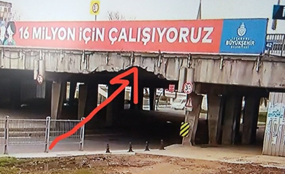 ‘16 milyon için çalışıyoruz’ pankartının asılı olduğu bir köprünün çökme tehlikesi ile karşı karşıya olduğu görüldü. Köprünün bir kısmının yıkık olması ve hemen üstünde yazılı CHP propagandasının açıkça yapıldığı pankart, sosyal medyada ‘Büyükşehir ironi mi yapıyor?’ şeklinde yorumlara neden oldu.