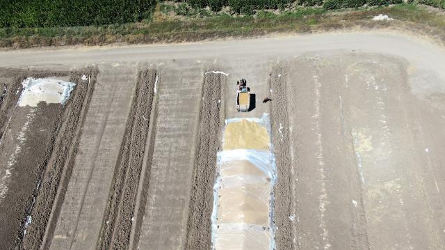 "Gelen ürünlerin altına burada depolanmak amacıyla önce naylonlar seriliyor, çiftçilerimiz buğdaylarını getiriyor ve üzerine döküyor. Tekrar üzeri naylonlanıyor ve topraklama yaparak kapatılıyor ve böylece korunmaya alınıyor. Uzun vadede depolanıyor. Satıcıya gidene kadar burada stoklanıp güvence altına alınmaktadır.