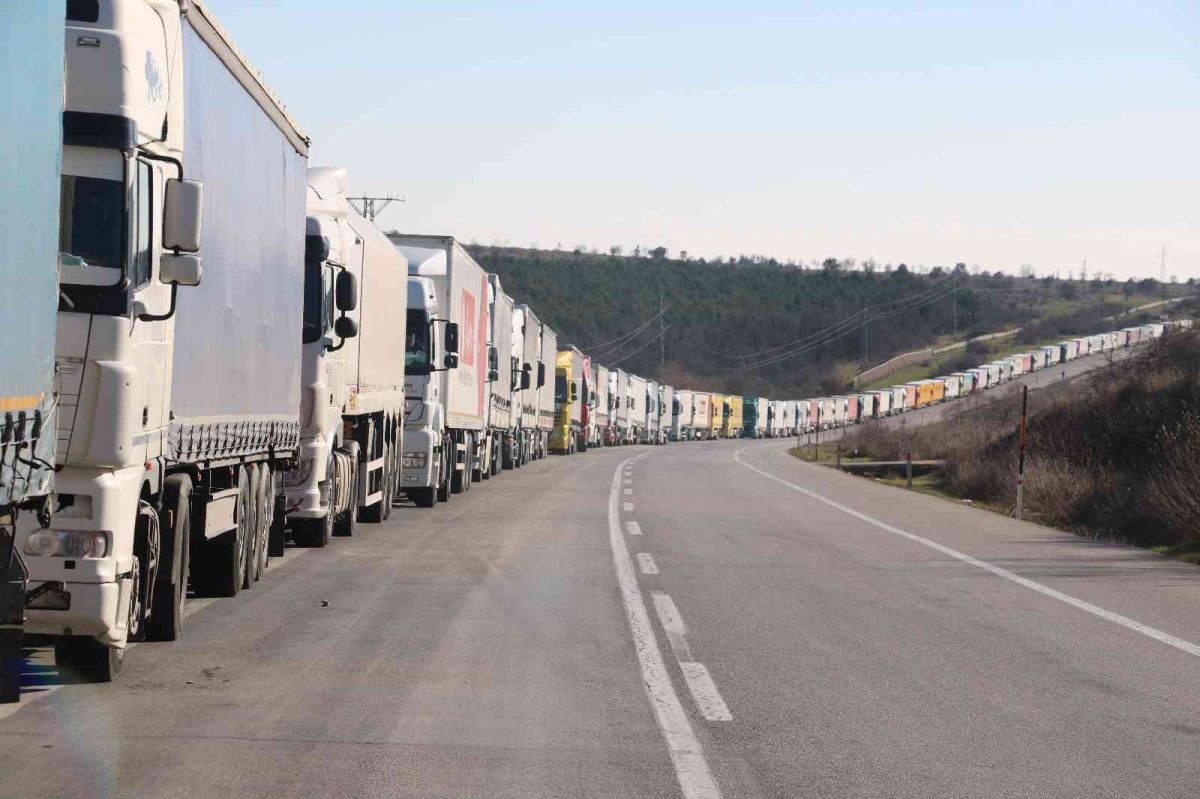 Taşıdıkları yükleri götürecekleri ülkelerdeki adreslere ulaştırmak isteyen sürücüler, sınır kapısında kuyruk oluşturarak bekleyişlerini sürdürüyor.
