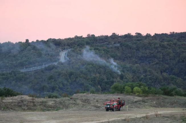 Bulgaristan'ın güneydoğusundaki bölgede dün başlayan orman yangını aralıklarla devam ediyor.
