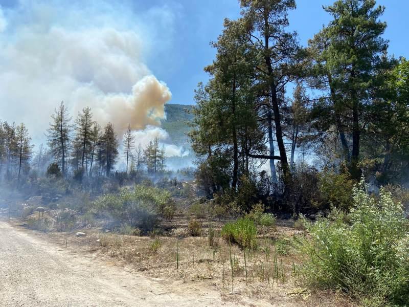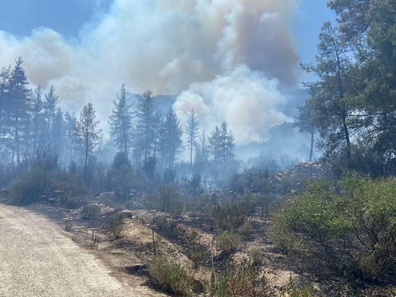 Dağınık yerleşimin olduğu bölgede bazı evler, tedbir amaçlı boşaltıldı. İhbar üzerine bölgeye sevk edilen ekipler, yangına helikopter, arazöz ve iş makineleri ile müdahale ediyor. Bölge halkı da söndürme çalışmalarına destek veriyor.