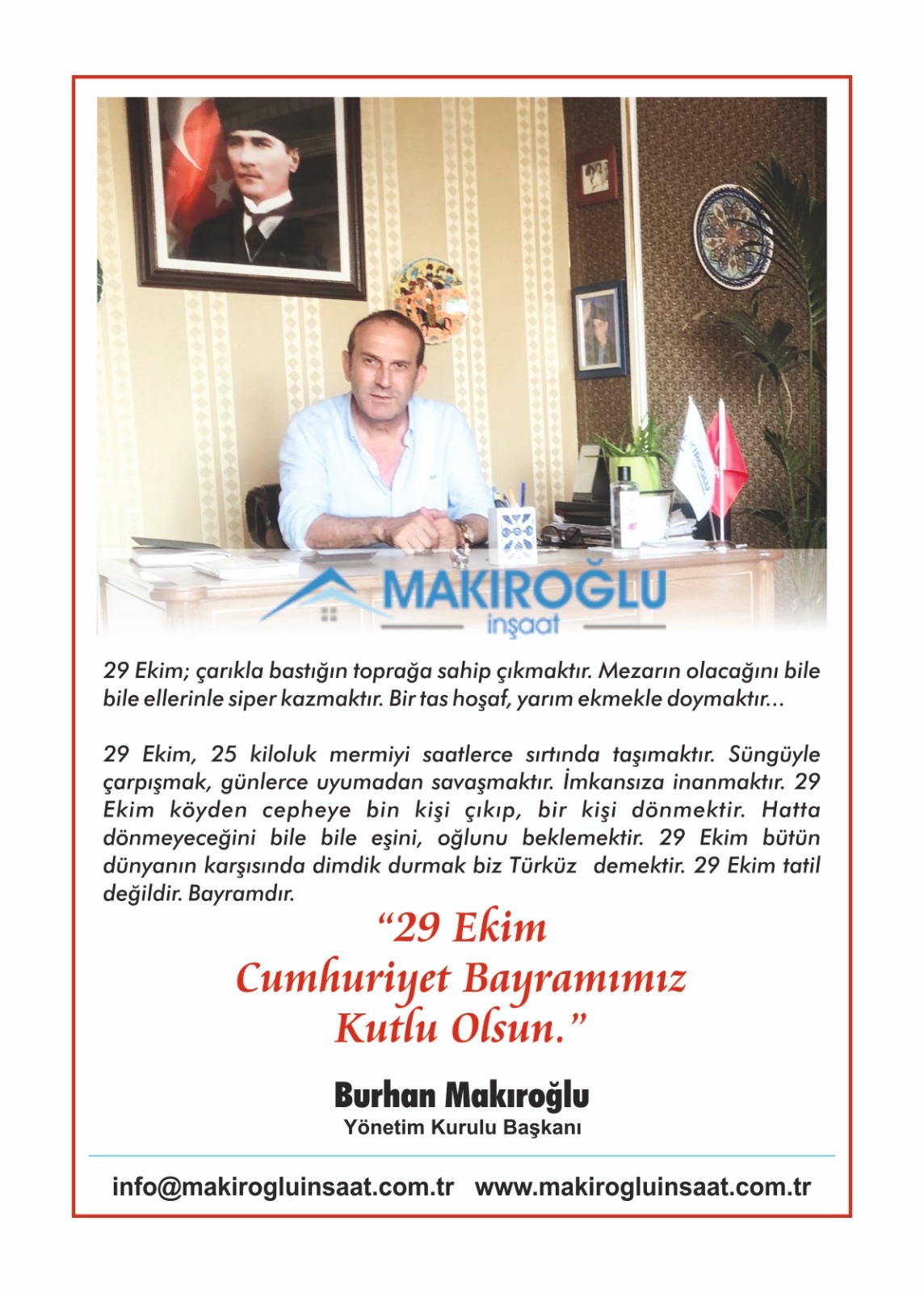 Burhan Makıroğlu'nun 29 Ekim Cumhuriyet Bayramı Mesajı