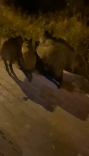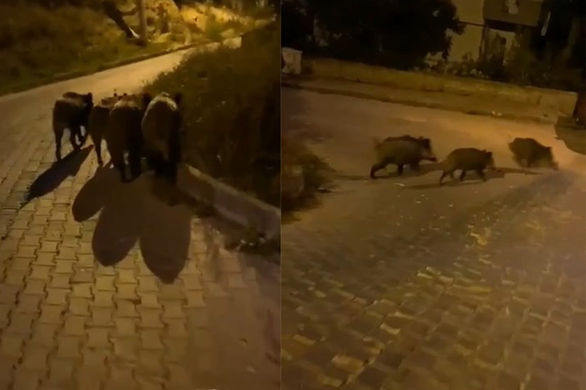 Domuz sürüsü, Mudanya ilçesi Halitpaşa Mahallesi'nde görüldü. Aç kalan ve yemek bulmakta zorluk çeken domuz sürüsü, çöp konteynerlerinden yiyecek bulmak için kent merkezine indi.