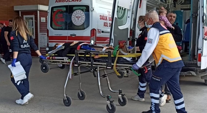 Kaza sonucu sürücüler ile kamyonette bulunan 5 aylık hamile Fas uyruklu Mennana Laamartı (28) ile 2 yaşındaki kızı Semanur yaralandı.
