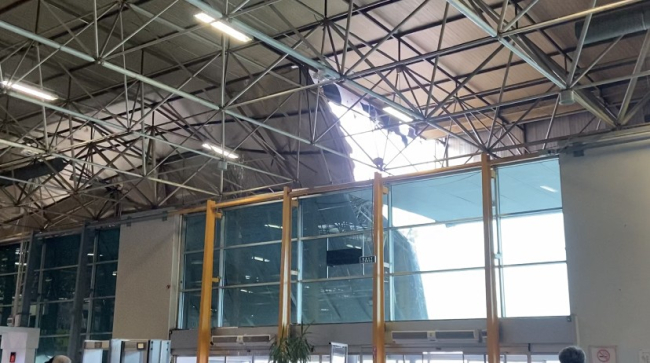 Bursa'da yıldırım düşmesi sonucu Şehirlerarası Otobüs Terminali'nin çatısı çöktü. Panik anları ve yıldırımın düşmesi kameralara yansırken, yaralı olduğu ihbarı üzerine ambulanslar bölgeye sevk edildi.