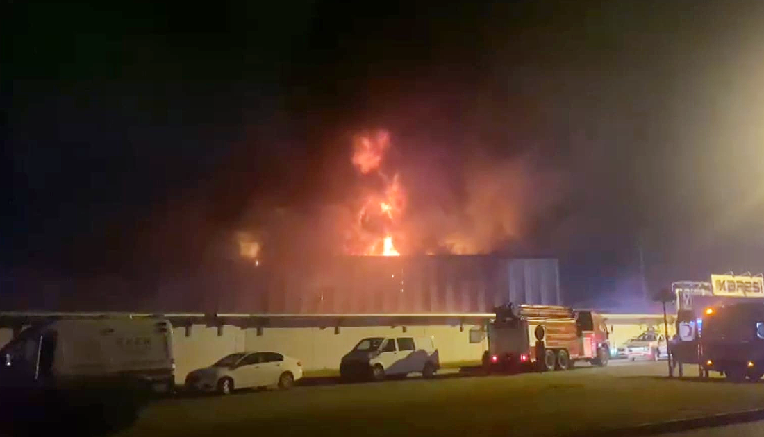 Yangın nedeniyle siyah dumanlar gökyüzünü kapladı. Yangını söndürme çalışmaları devam ederken, polis ekipleri de çevre güvenliği aldı.