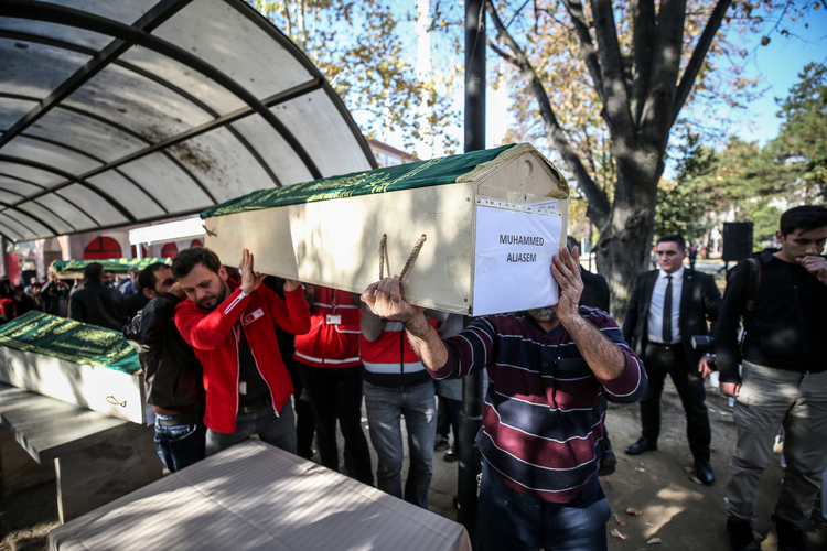 Yangında eşini ve 6 çocuğunu kaybeden Hüseyin Aljasem (36), diğer 2 çocuğun anne ve babası ile yakınları büyük üzüntü yaşadı. Yakınlarının teselli etmeye çalıştığı anne Hanum Eşşe, tabutlara kapanıp gözyaşı döktü.