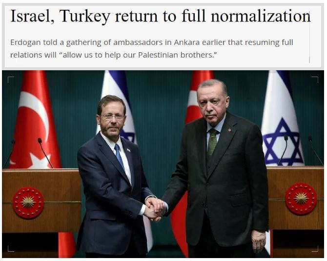 "İsrail ve Türkiye tam normalleşmeye dönüyor" diyen Jerusalem Post, normalleşmenin büyükelçilerin ve başkonsolosların eski konumlarına geri dönmesini içerdiğini yazdı.