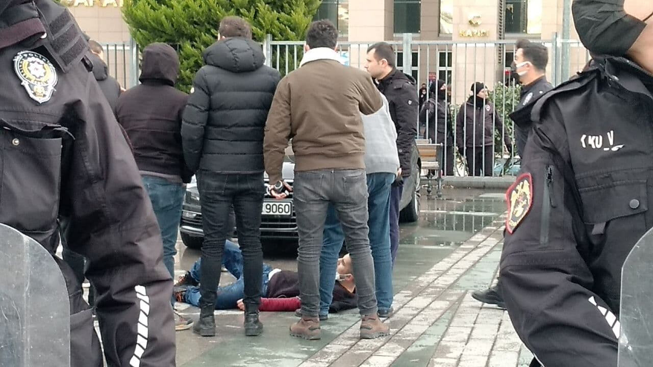 Olayı gören çevredeki diğer polisler, silahla ateş ederek saldırganı bacağından vurdu.