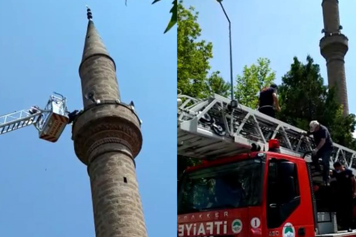 Büyükşehir Belediyesi İtfaiye Daire Başkanlığı ekipleri, Fevzi Çakmak Mahallesi'nde bulunan bir caminin minaresinde bir kişinin mahsur kaldığı ihbarını aldıktan kısa süre sonra bölgeye gitti. Minareyi temizlemek için minareye çıkan ve orada mahsur kalan A.A. isimli vatandaş, ekipler tarafından kurtarıldı. Merdivenli araç yardımıyla kurtarılan A.A. caminin minaresindeki güvercin pisliklerini temizlediği sırada, orada mahsur kaldığını belirterek, itfaiye ekiplerine çalışmalarından dolayı teşekkür etti.