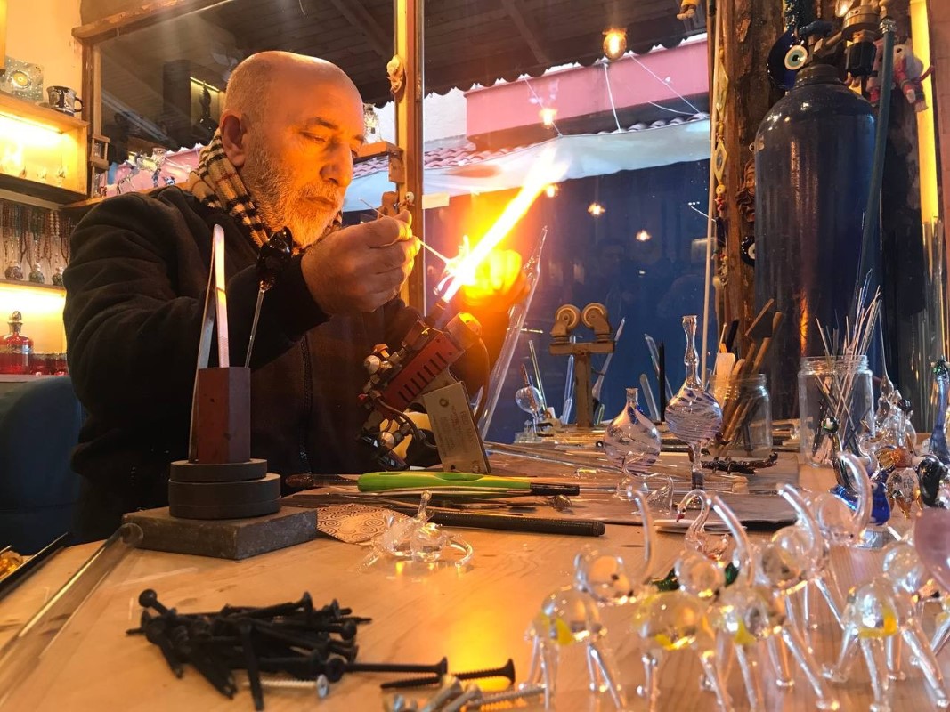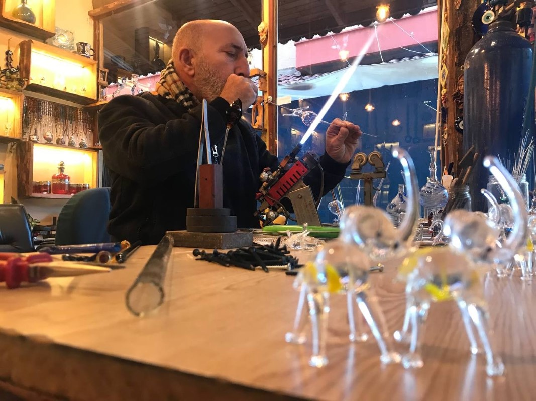 Ateş ve camı buluşturup nefesiyle şekillendirerek birbirinden güzel sanat eserleri ortaya koyan Paşaoğlu, küçük dükkanından dünyaya açılıyor. Ham madde olarak boroksilikat cam kullanan Paşaoğlu, bin derecenin üzerinde sıcaklıkta camları önce eritiyor, ardından nefesiyle şekillendiriyor.