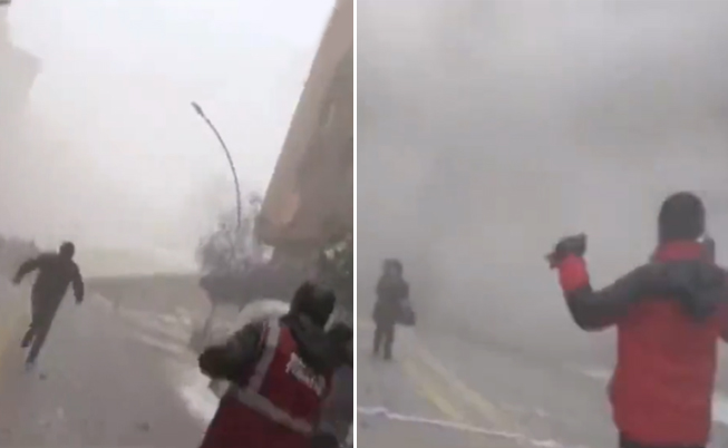 Artçı sarsıntıların devam ettiği Malatya'da kameraların canlı yayında olduğu esnada hasarlı binalar saniyeler içinde yıkıldı. Vatandaşlar koşarak bölgeden uzaklaştı.