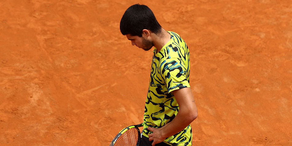Carlos Alcaraz son şampiyon olarak katıldığı Madrid'de Rublev'e elenmesinin ardından; daha önce sakatlık yaşadığı kolunda kas ödemi oluşması sebebiyle Roma Masters'tan çekildi.