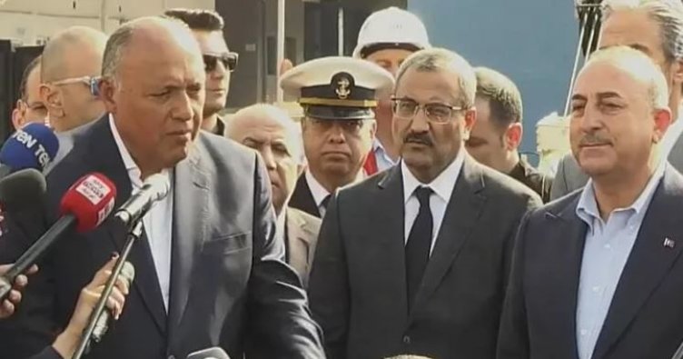 Şukri ve Dışişleri Bakanı Mevlüt Çavuşoğlu, Mısır'dan yardım malzemesi taşıyan "El Hürriye" gemisinin yanaştığı Mersin Uluslararası Limanı'nda basına açıklama yaptı.