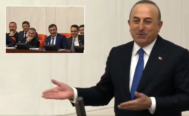 Dışişleri Bakanı Mevlüt Çavuşoğlu, Genel Kurul'a hitap etti. Çavuşoğlu’nun Nureddin Nebati’ye dönerek “Bütçemiz bittiği zaman da Sayın Maliye Bakanımıza gidiyoruz, gözlerine bakıyoruz. Gözlerinde ışıltı varsa talebimizi iletiyoruz” sözleri gülüşmelere neden oldu.